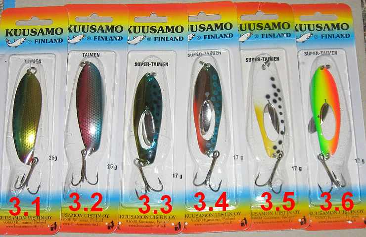 Для тех, кто интересуется рассветами тайменей тяжело описать их словами, без цветного фото!! Они многие похожи на друг друга , но адо видеть глазами!у меня 5 расцветок, все работают, но рыбалку начинаю с 2 цветов! Еще один цвет про запас, а остальные на удачу!! Это все про тайменя( а , супер таймень , что с язычком , там отдельная тема!!)