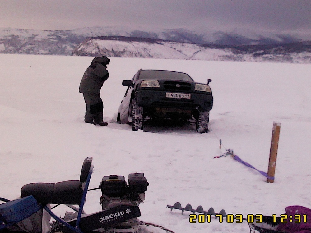 Ездил на Ниве. есть на льду перемёты-колея есть,даже пузотёрка была.Лёд как и на Гертнера-у меня электробур с наставкой ещё запаса 15-20см.Местные на снежиках мотаютса.