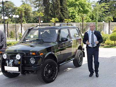 Журналисты ждали премьера около входа в его резиденцию в Сочи, где в скором времени должны были начаться его переговоры с премьер-министром Турции. Неожиданно для всех во двор резиденции заехала окрашенная в камуфляжные тона трехдверная "Нива". За рулем автомашины сидел сам Путин.