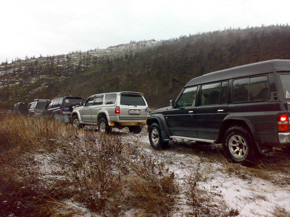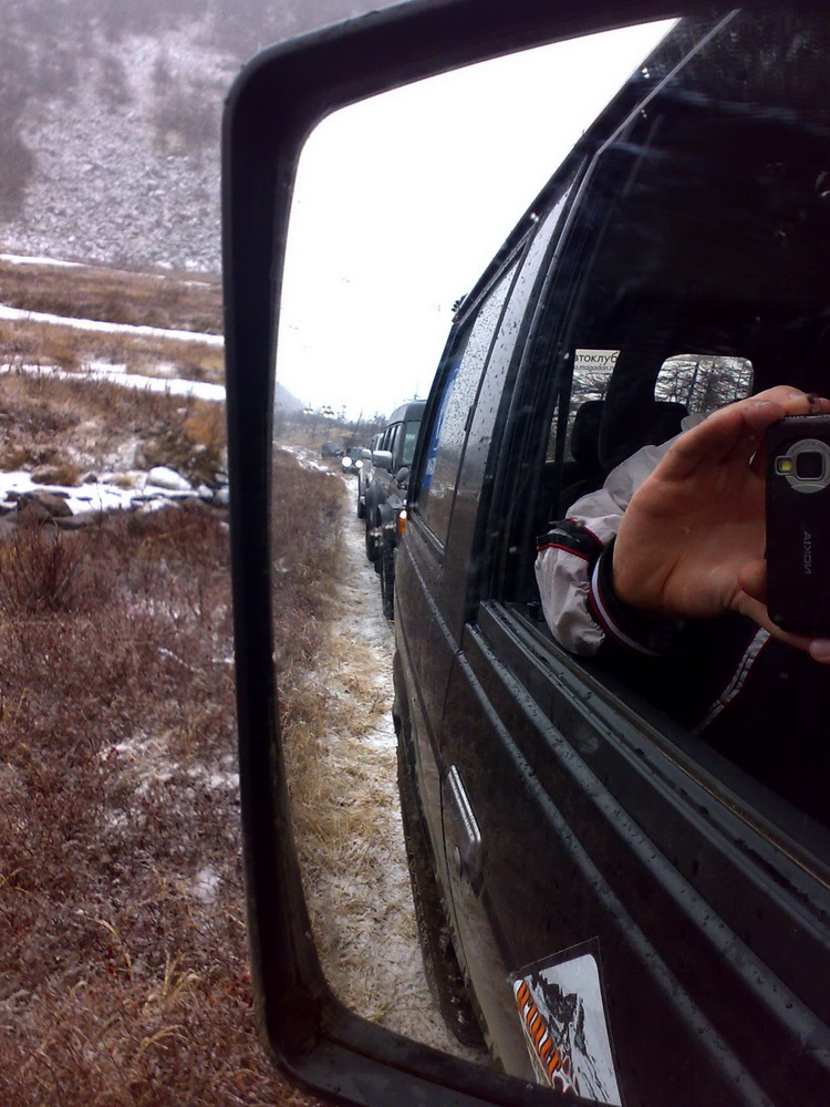 операция по вытаскиванию сурфа на дорогу по склону, по которому даже на рабочей машине ехать страшно, особенно в такую погоду, заняло у нас ещё полчаса и некоторой сноровки. Были применены методы: с избы по нитке (точнее с авто по тросу), "тросогаситель", испытали свои силы в русской народной забаве "Перетягивание каната" и даже немного успели поиграть в паровозики!!! я был локомотивом