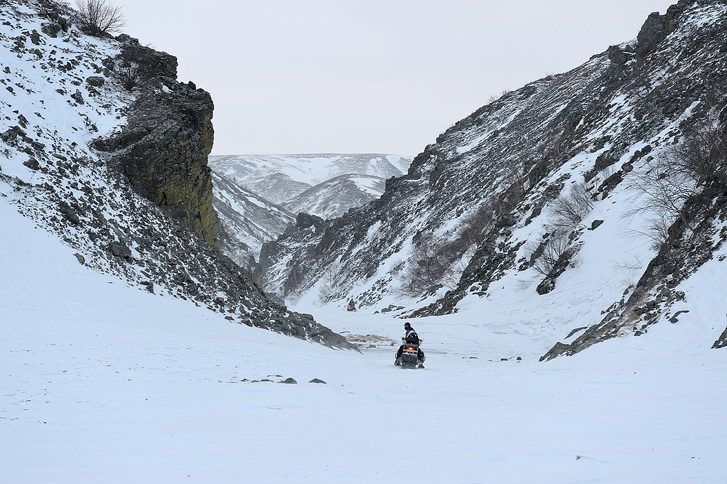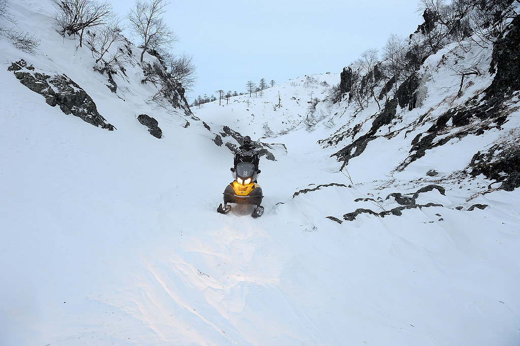 Я, когда спускался с гряды Билибина, реально хотел уже прыгать со снегохода (предварительно зажав конечно тормоз), ибо страшно было не по-детски. Совсем.