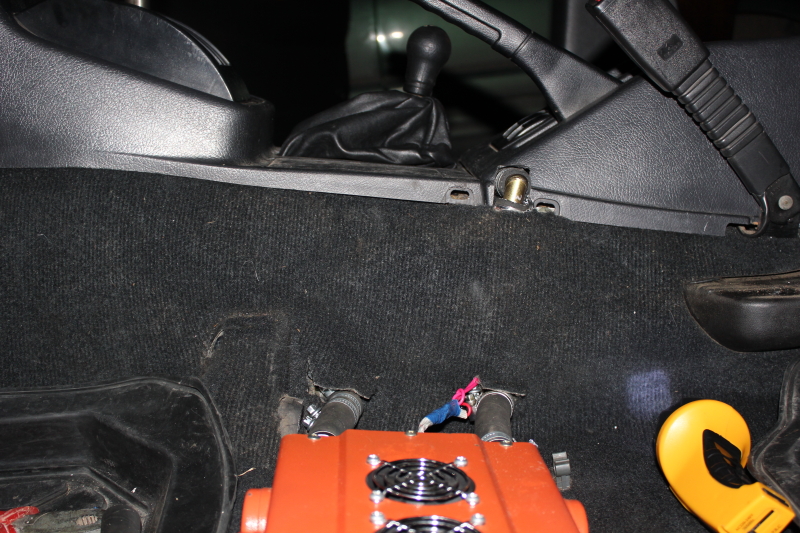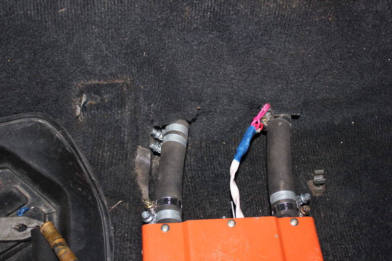В пластике по месту болгаркой вырезал отверстия под шланги, которые при установленных сиденьях не видны