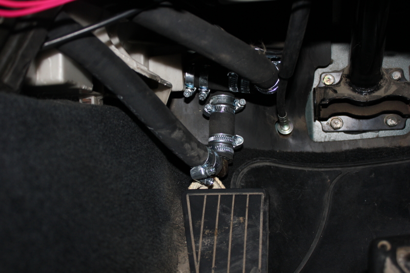 Все соединения садил на два хомута для надежности. Выходной патрубок основной печки отпилил в салоне на месте сгиба и через уголок запустил на доп. печку под пассажирское сиденье, с нее на печку под водительское(печки соединил последовательно)