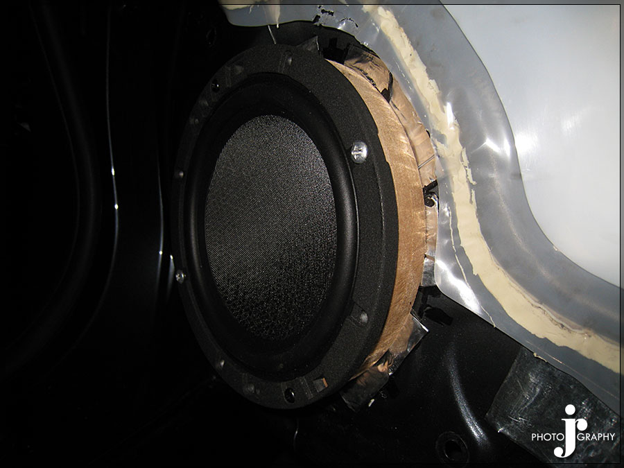кольцом и динамиком проложить и между динамиком и обшивкой, по кантику.