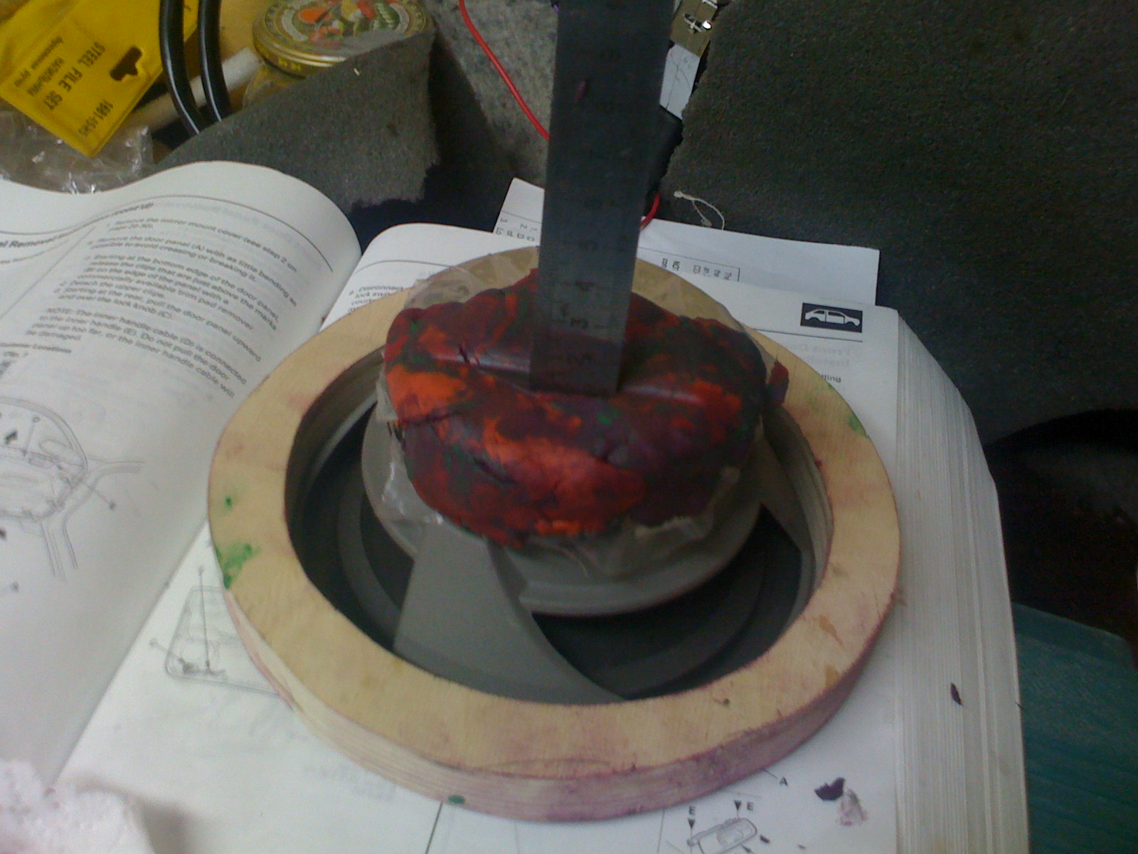 В результате распилилась дверь, выпилилилсь кольца из фанеры, все примерилось - расстояние до стекла примерно 5-6мм, если не больше.