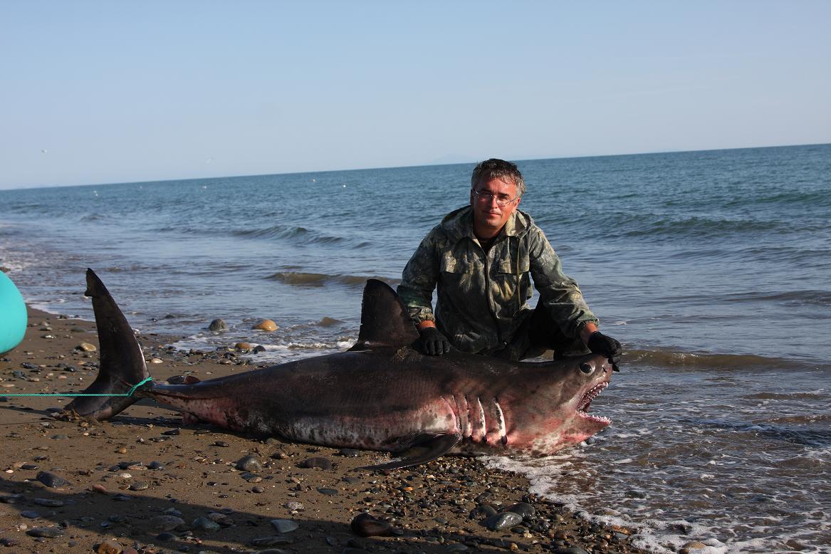 Более пятнадцати лет назад на "Соленом" компания приехала рыбачить на красную. Поставили сетку. Выпили. Один из них говорит, что то сетка затонула, наверное много рыбы попалось. Берет колотушку и на резинке поплыл доставать рыбу. Увидев в сетке хвост запутавшейся акулы так рванул на берег, что закончил грести у костра. Вобщем сетку вместе с акулой вытаскивали машиной. Оказалась сельдевая акула. А интересно, это чудовище когда вытаскивали оно было еще живое?