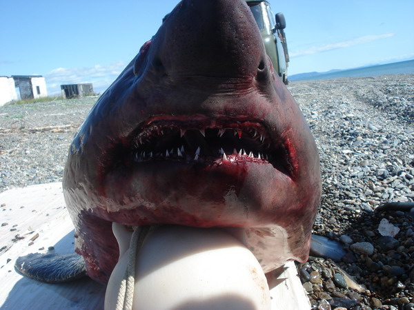 Думаю что если в районе Ойры в море поставить мешков пять груз,на фале эдак восмерке, поставить нормальный буй, а от буя опять же на таком фале привязать реальный крюк с насаженной горбушей- то будет счастье изловить акулу(или нерпу) практически на закидушку.Можно даже на водных лыжах покататься