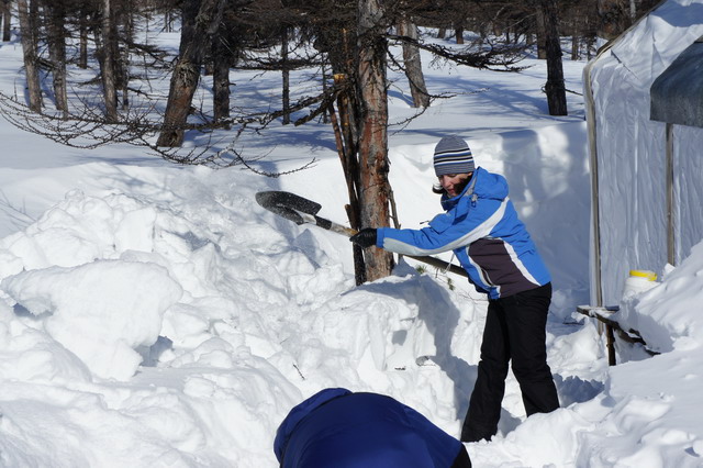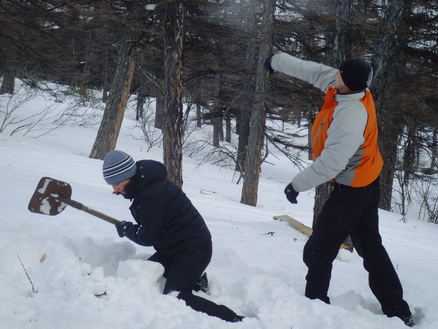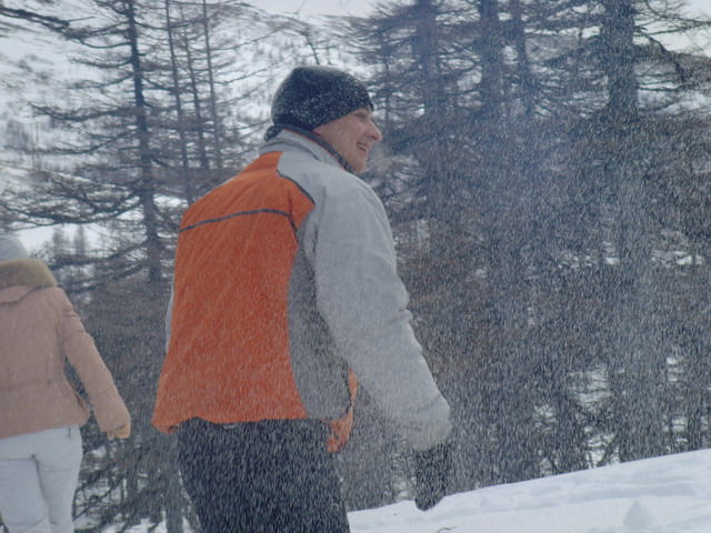 Не помню..на автопилоте уже была (три ночи спала по часа три) и пока била дорогу на Нахтач,ушаталась вся.Где то в обед.Справа стояла компания ,но посмотрела это не вы sad.gif .А волшебный бинокль узрел,что вы близко,но уставшие глазки,ножки и ручки отказывались sad.gif преодолевать уже любое расстояние.Когда осталась одна(Анки же не было)..вот пробью пару метров,нагребу перед собой,раскидаю лопатой и  дальше..никакого разнообразия blush.gif .Короче наигралась в снежки по взрослому. training1.gif