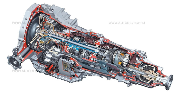 А чем плохи обычные гидромеханические «автоматы»? Их базовая конструкция неизменна с 50-х годов. Гидротрансформатор для «нежесткой» связи и увеличения крутящего момента при старте с места и в тяжелых условиях плюс несколько рядов планетарных передач, элементы которых блокируются с помощью фрикционов и ленточных тормозов в разных комбинациях. В большинстве современных шестиступенчатых «автоматов» три планетарных ряда, а стало быть, задействовано минимум три фрикциона — это минус 3% от КПД. Суммируем с тем, что растворяется в подшипниках (0,8%) и насосе гидравлики (1,5%). Итого — 5,3% потерь. Но основная беда — гидротрансформатор, три лопастных колеса в масляной ванне: потери превышают 8%! Итого — 13,3%...