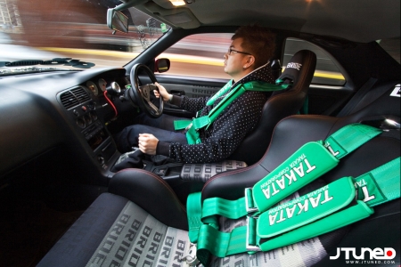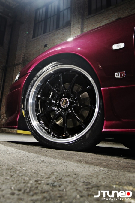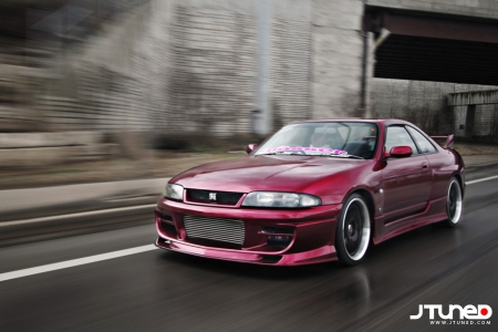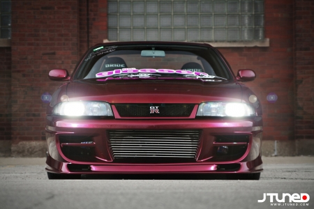 Наш GT-R от носа до хвоста одет в полный боди-кит Do-Luck, который придает его внешнему виду неимоверную крутость. (Кстати, по неизвестной причине я не могу сдержать приступ головокружения каждый раз, когда вижу его огромный интеркулер, кажется, так и готовый пропылесосить все вокруг). После того, как все детали из стеклопластика были прикручены к кузову, и проверка показала, что все прикручено верно, кузов был полностью покрыт краской PPG. Из всех доступных цветов только один так и кричал, что его нужно выбрать - Magic Magenda. Да, вы верно прочли. А теперь попробуйте произнести это название три раза подряд, и чтобы без ошибок! Пурпурно-малиновый оттенок, получившийся в итоге, почти одинаков с тем, который носил название Maroon в то время, когда им красили кузова S14.
