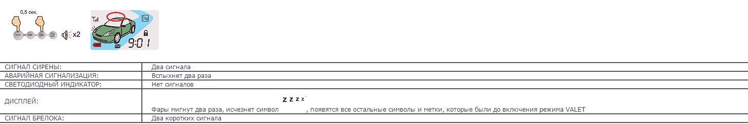 может уходит в режим валет? на брелоке написана какая комбинация постановки/снятия этого режима.