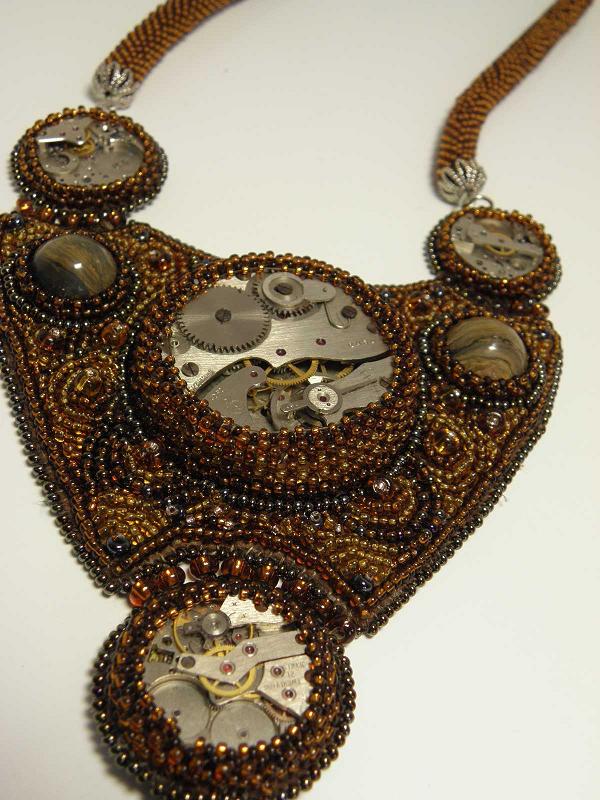 в работе использованы: часовые механизмы (центральный - секундомер бывший), бисер чешский, японский Тохо, сенгилиты, натуральная кожа